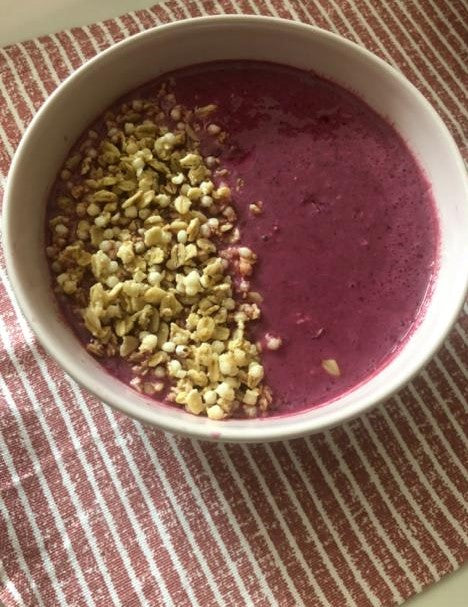Esta smoothie bowl é uma opção rápida que gosto de preparar no verão.